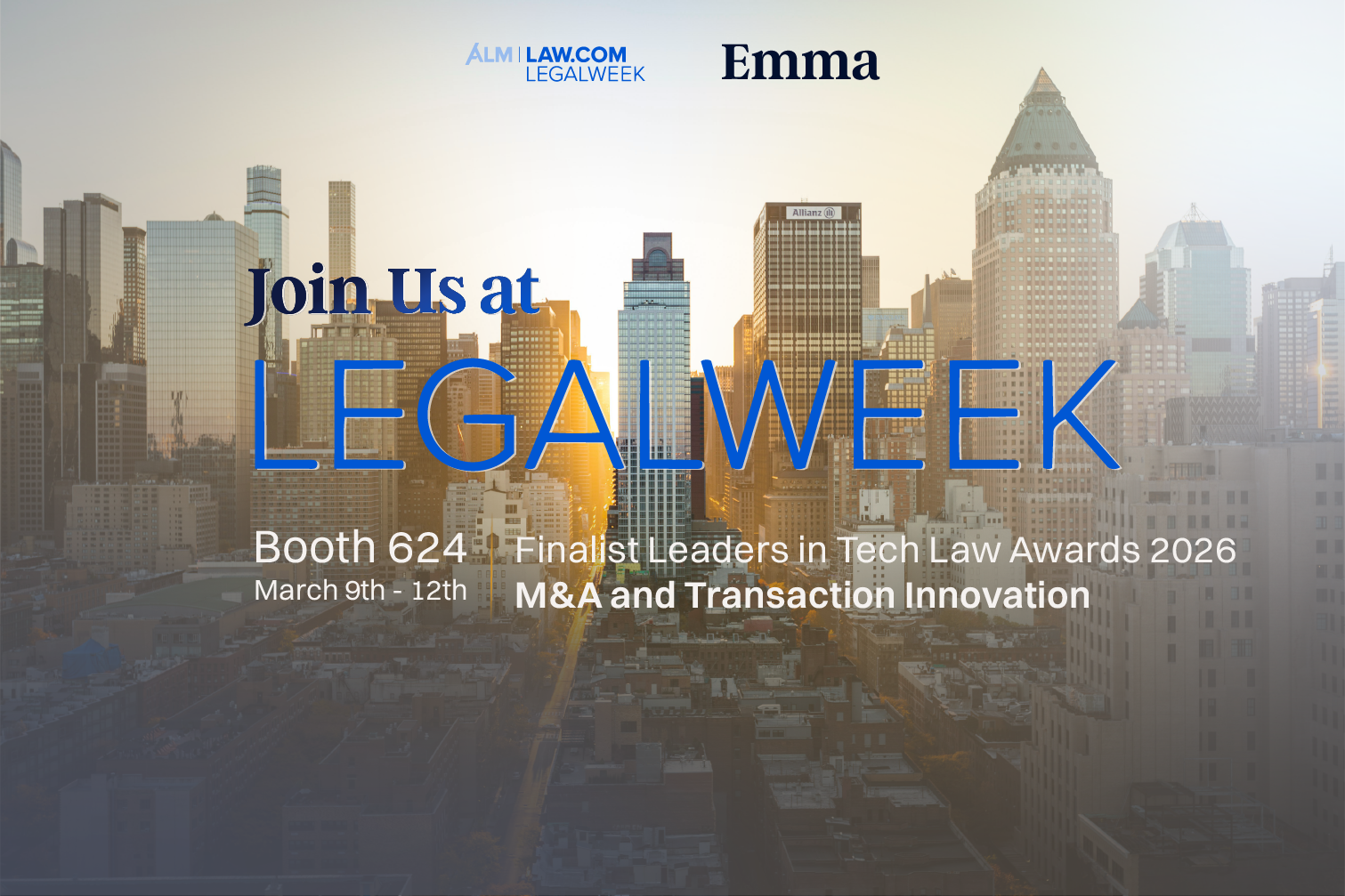 We are also proud to mention that Emma Legal has been named a finalist for the Legalweek Leaders in Tech Law Awards in the M&A & Transaction Innovations category, one of the most closely watched recognitions in legal tech. The winner will be announced on March 9th. Stop by booth 624 and keep your fingers crossed with us, we hope to showcase a nice trophee on Tuesday.